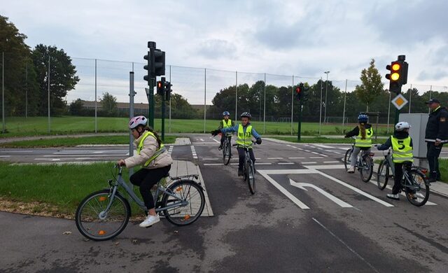Das Vorbereitungsheft für die Fahrradausbildung „Arbeitsheft Radfahren im 4. Schuljahr“ sowie die drei praktischen Übungseinheiten in der Jugendverkehrsschule Regensburg machten die Kinder fit für die Fahrradprüfung. Unter Anleitung und Aufsicht von Polizistin Frau Reitmeier und Polizist Herr Dürr dürfen die geprüften Kinder noch am Realverkehr der Stadt Regensburg teilnehmen.