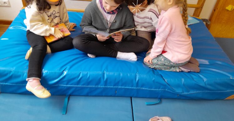 Einige Lesekinder der Klasse 4a besuchten mit Frau Stegmüller am Freitag die Vorschulkinder des Kindergartens Napoleonstein. Sie hatten sich eigene Kinderbücher ausgesucht, die sie gruppenweise den „Kleinen“ vorlesen wollten. Eine ganz besondere Stimmung der Bewunderung und des Stolzes zog in die Turnhalle der Kita ein. Für ALLE eine tolle Aktion!